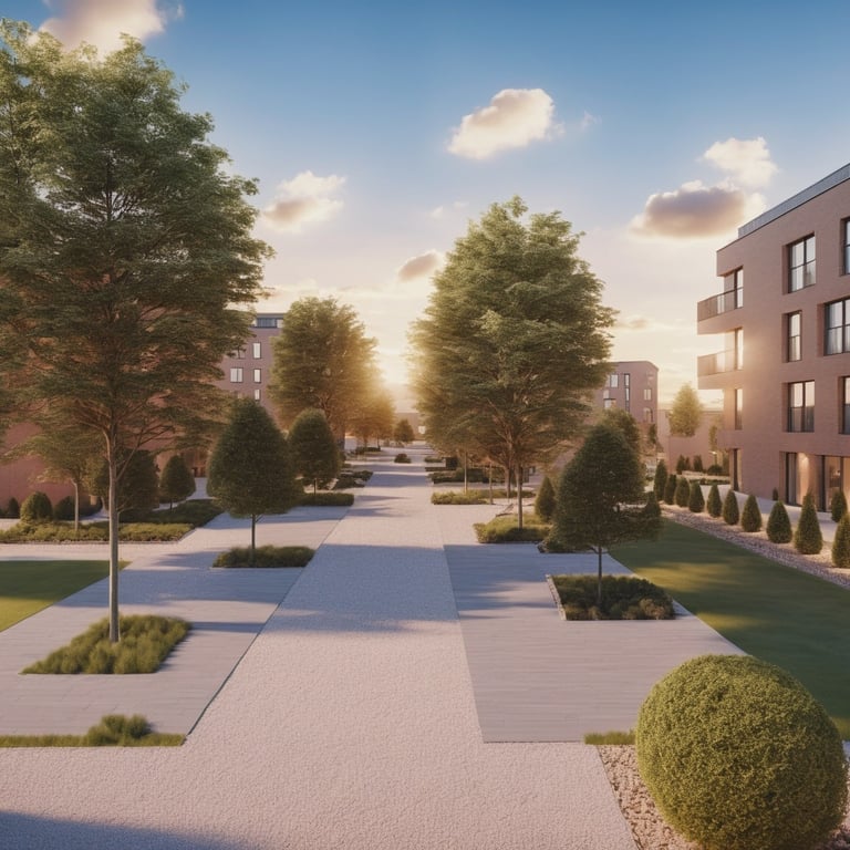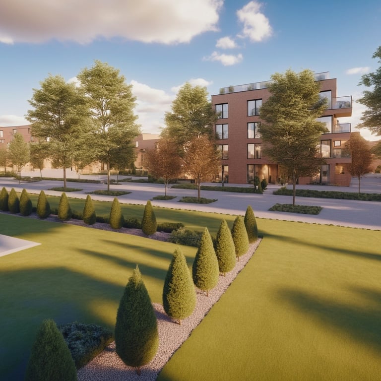 Vos žengę iš namų, jus pasitiks žalumos apsupti takai, kurie kviečia mėgautis subalansuotu ir harmoningai su gamta suderintu gyvenimo būdu. Šiuolaikinis pastatų dizainas, kuriame dominuoja elegantiškos plytų detalės, spinduliuoja stilių ir ilgaamžiškumą.